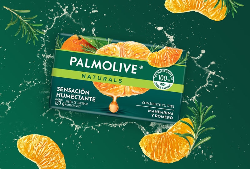 El jabón en barra Palmolive Naturals Mandarina y Romero tiene una  fórmula humectante infusionada con ingredientes 100% de origen natural que ayuda a mantener la humectación natural de tu piel.